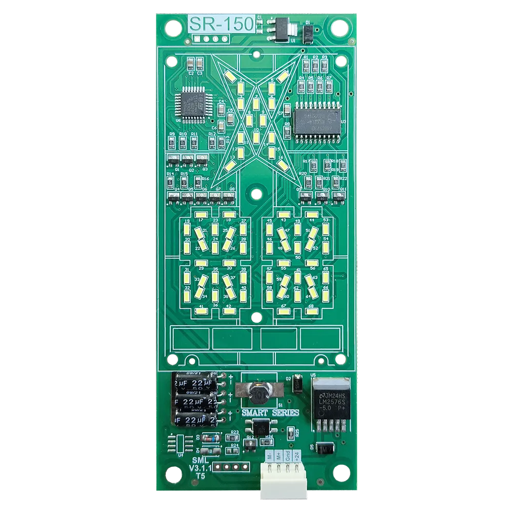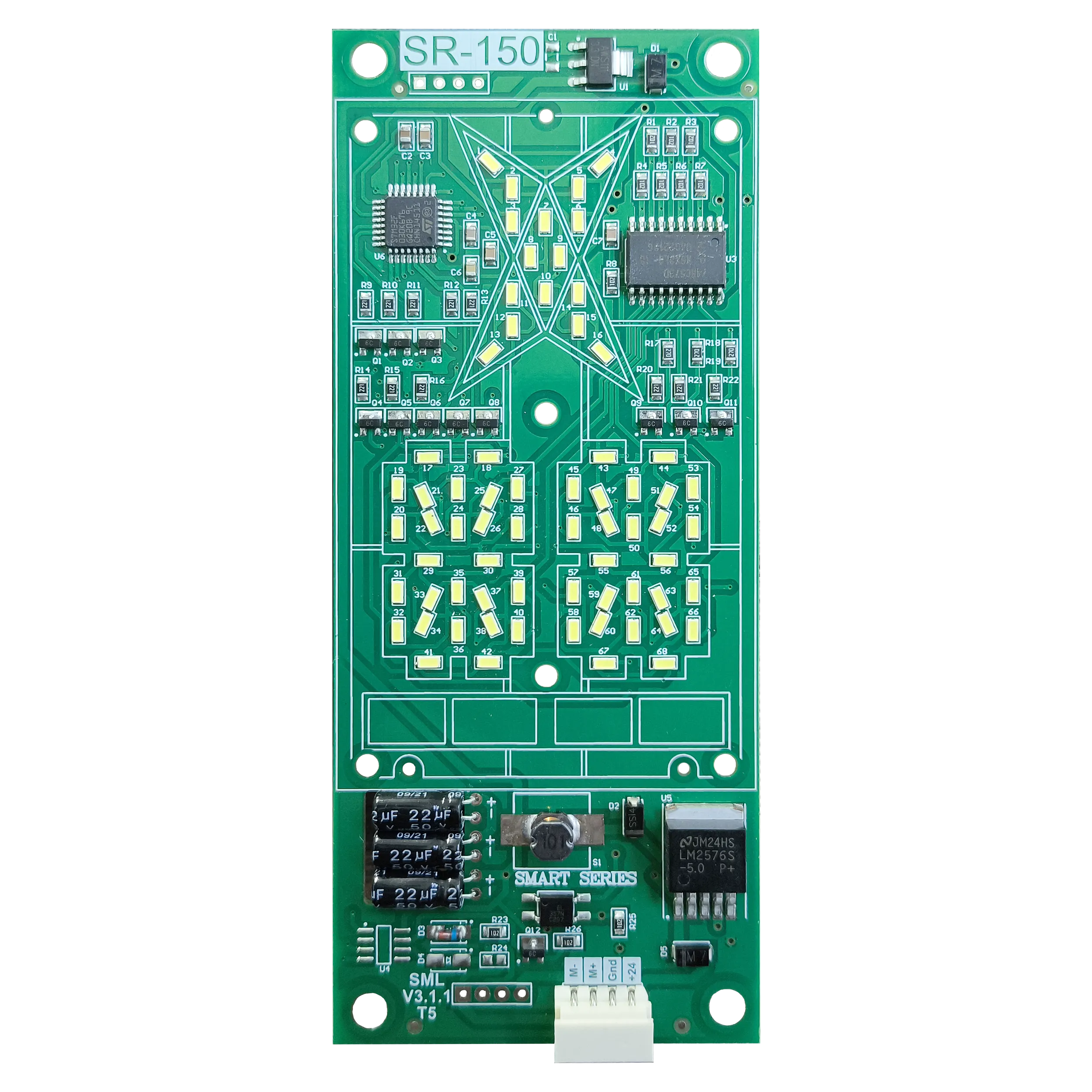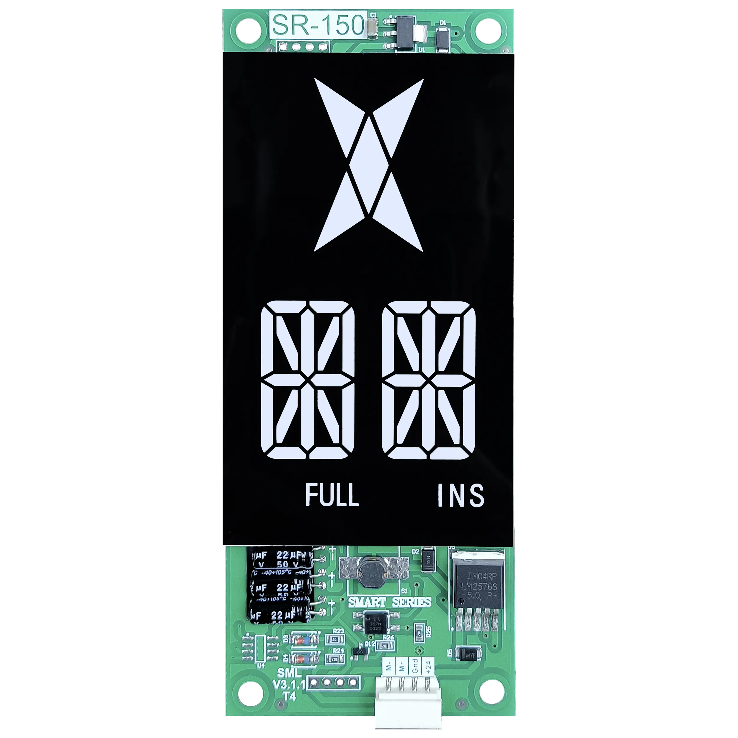 نمایشگر سگمنتی SR-150 برای نمایش شاخص ها و کلیه پیام های تابلو فرمان آسانسور مورد استفاده قرار می گیرد و دارای افکت چرخشی برای نمایش می باشد. این نمایشگر برای شستی های طبقات آسانسور مورد استفاده قرار می گیرد.